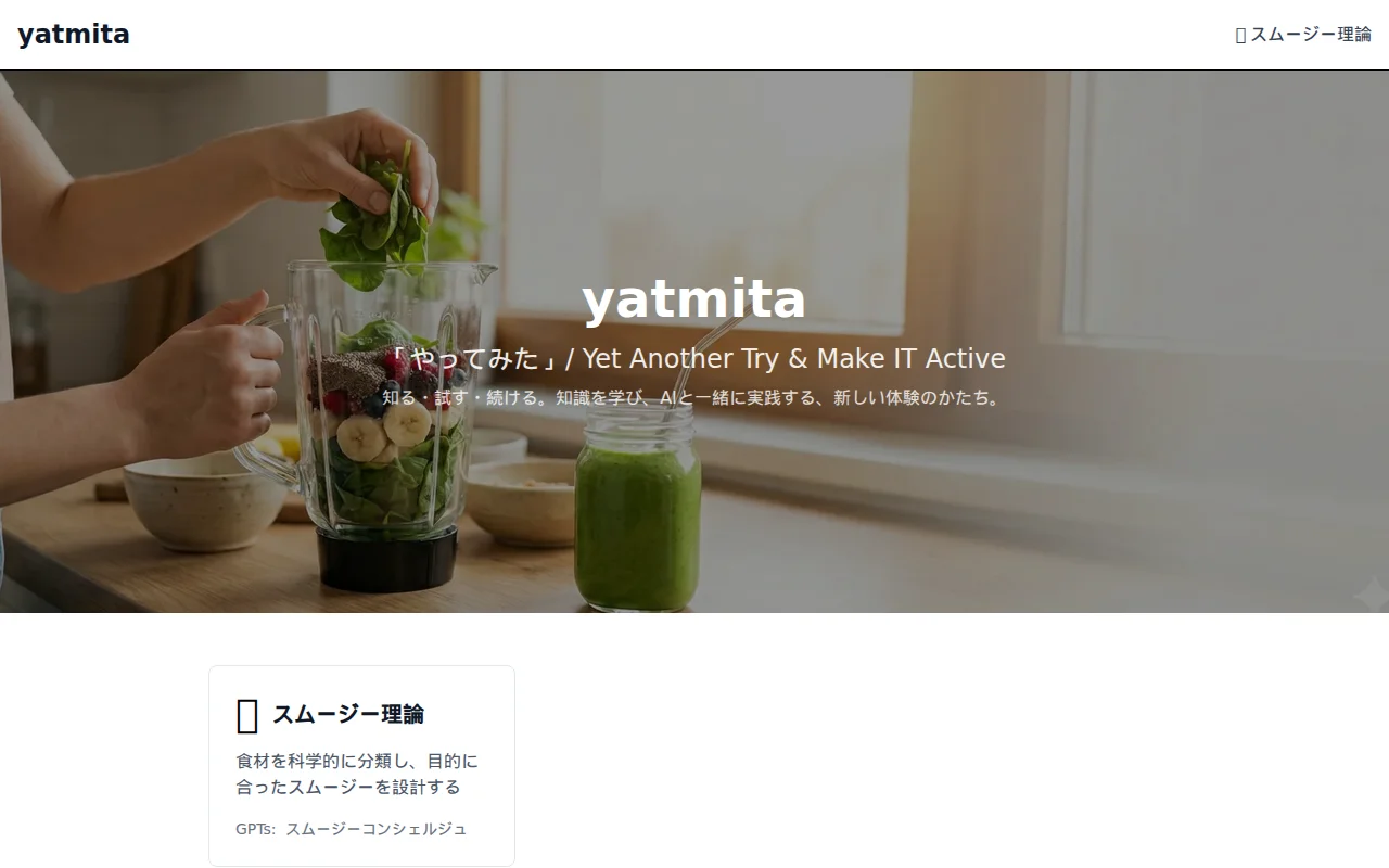 気になった点は、少しストイックすぎること。yatmita は「やってみた」なので、もう少し親しみやすさが欲しいと感じました。